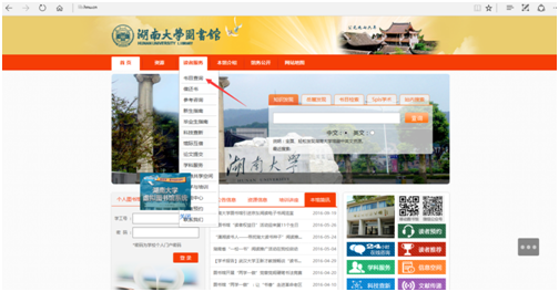 登陆湖南大学图书馆网站主页://lib.hnu.cn